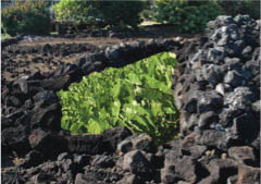 The field systems in Koloa are unique in that they are laid out on almost bare pahoehoe lava rock.The objective was to provide maximum crop yield in limited 'uala (Sweet potato) space and with limited water. The natural environment was manipulated so kalo and other crops not naturally suitable to the dry rocky Koloa environment thrived.